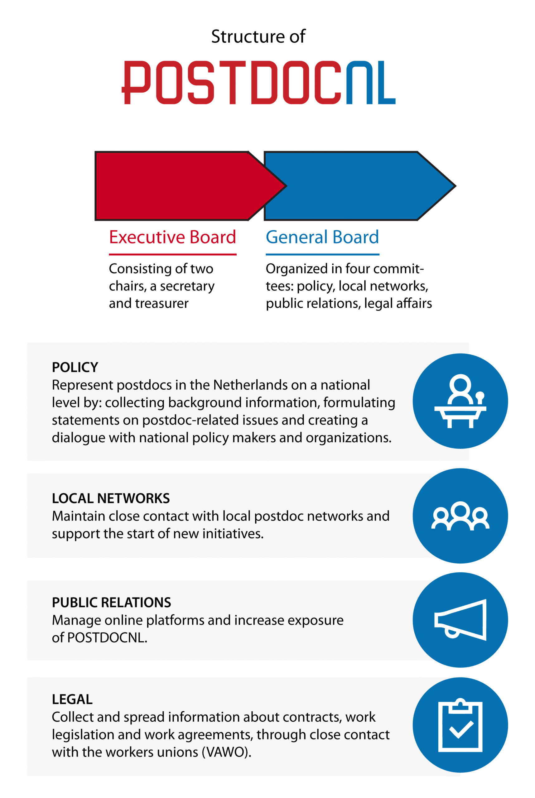 In our quest to reach out for all postdoctoral researchers, we as POSTDOCNL are facing the problem of none existing definition of a postdoc. What makes a scientist a postdoc? According to the Rathenau Institute, a ‘postdoc’ is a scientific personnel in the salary scale 10–12 with a temporary contract [...]