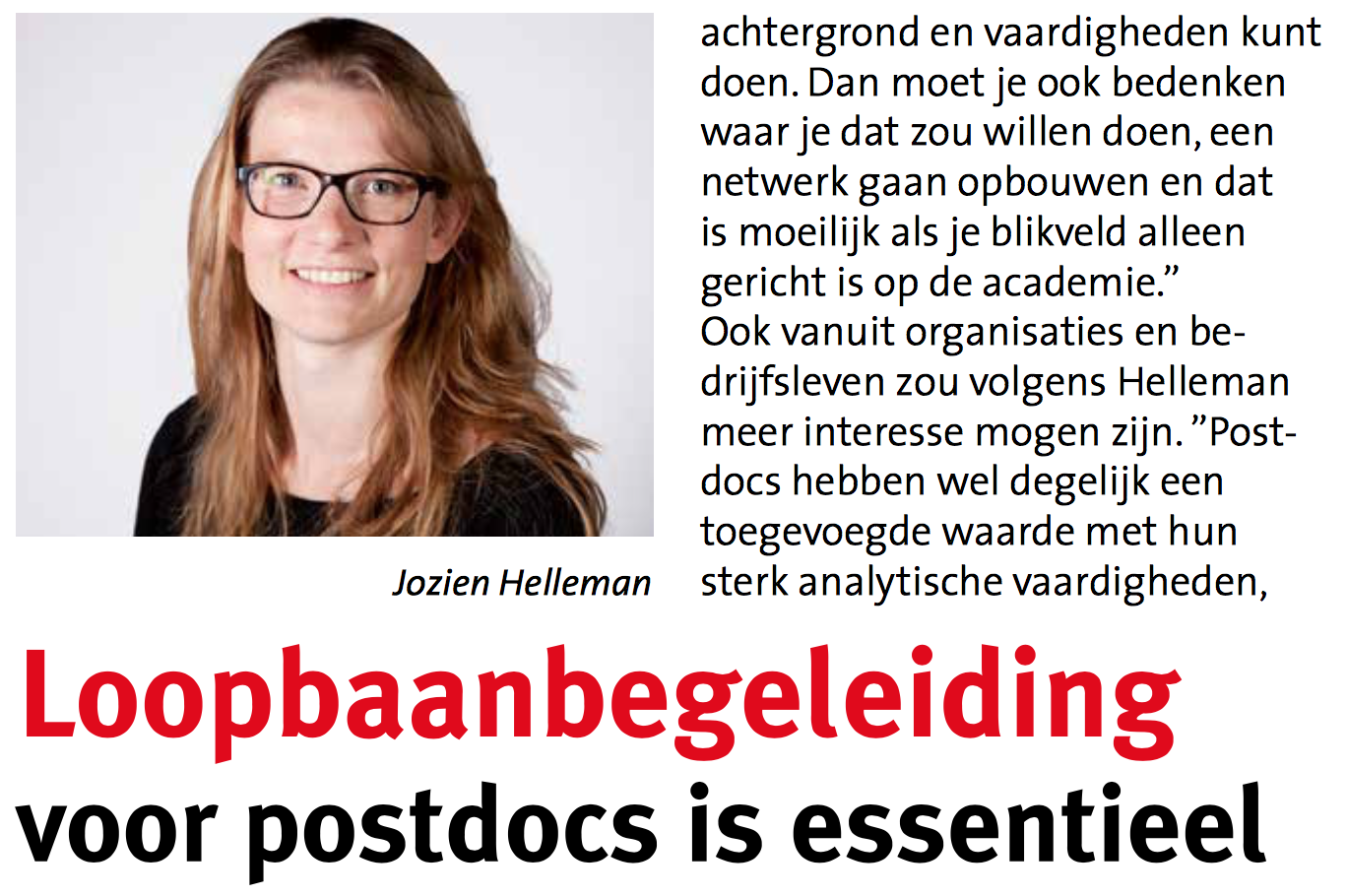 There is a piece in the NRC next newspaper about the career perspectives of young researchers in which the POSTDOCNL platform is mentioned. Read the article of nrc.nl: Promovendi moeten aan het werk bij bedrijven, maar hoe moet dat? ... read more > Join the LinkedIn groupSign up to [...]